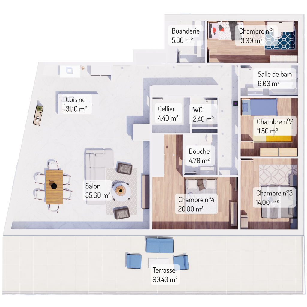 Le projet offre plusieurs appartements de différentes tailles. Vous pouvez trouver l’appartement qui vous convient le mieux en utilisant le selecteur ci-dessous.