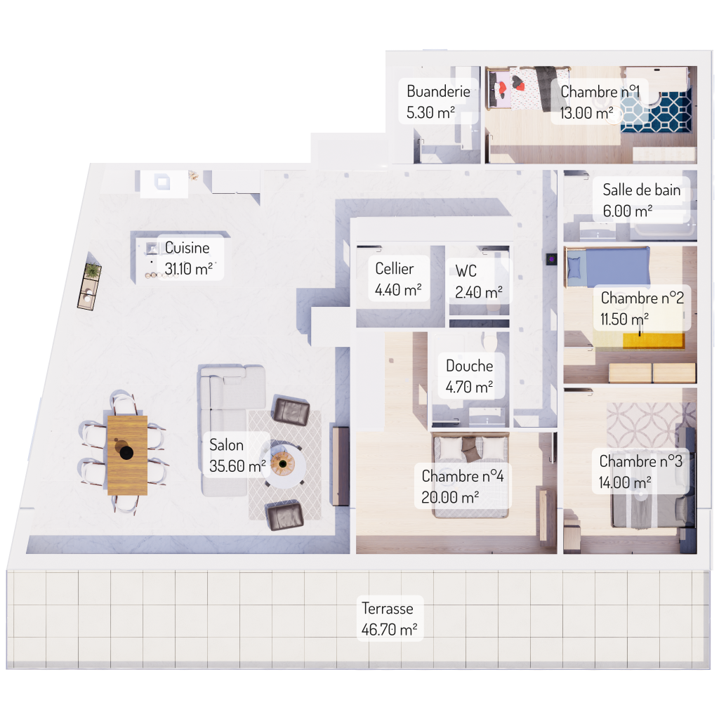 Le projet offre plusieurs appartements de différentes tailles. Vous pouvez trouver l’appartement qui vous convient le mieux en utilisant le selecteur ci-dessous.